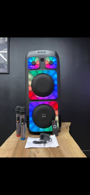 اقلام همراه : اسپیکر ،دو عدد میکروفون بی سیم، ریموت کنترل