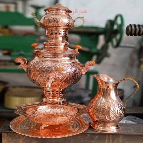 ست سماور مسی 4 لیتری، ساخته شده با ورق اعلاء، قلم زنی خاص و ظریف